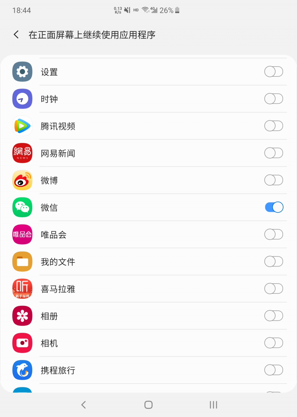 这一功能虽然说不上有多大的价值,但至少也算是让折叠屏设计实现了自我价值。我们可以设想一下,在聊微信的时候先通过小屏预览内容,准备回复的话可以打开折叠屏,这时候软件会自动从小屏切换到大屏,在体验上是比较平滑的。