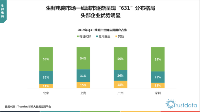 第三方调研公司Trustdata及Questmobile的数据显示,每日优鲜已有超1000万的app月活,并在小程序端拥有1500万月活,此外,其还在北京、上海、广州、深圳四个一线城市拥有近60%的用户规模占比,在行业中拥有绝对的领先优势——毫无疑问的是,每日优鲜已经凭借这种全新的模式,聚合到了越来越大的用户规模。