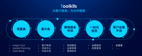 用户洞察和策略制定是每一次营销活动的起点,商业工作台(Toolkits)中的营销数字引擎“观星盘”基于AI和大数据技术帮助广告主精准找到目标用户群体,并深度理解用户需求。
