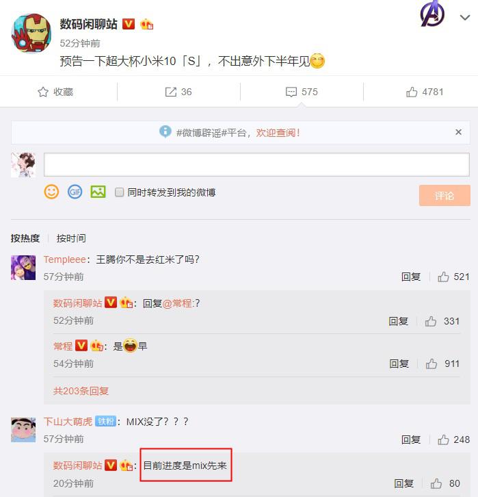 今日中午,数码博主 @数码闲聊站 爆料称," 超大杯 " 小米 10S 不出意外将于下半年发布。同时,按照目前的进度来看,小米 10s 将在 MIX 系列新品之后推出。