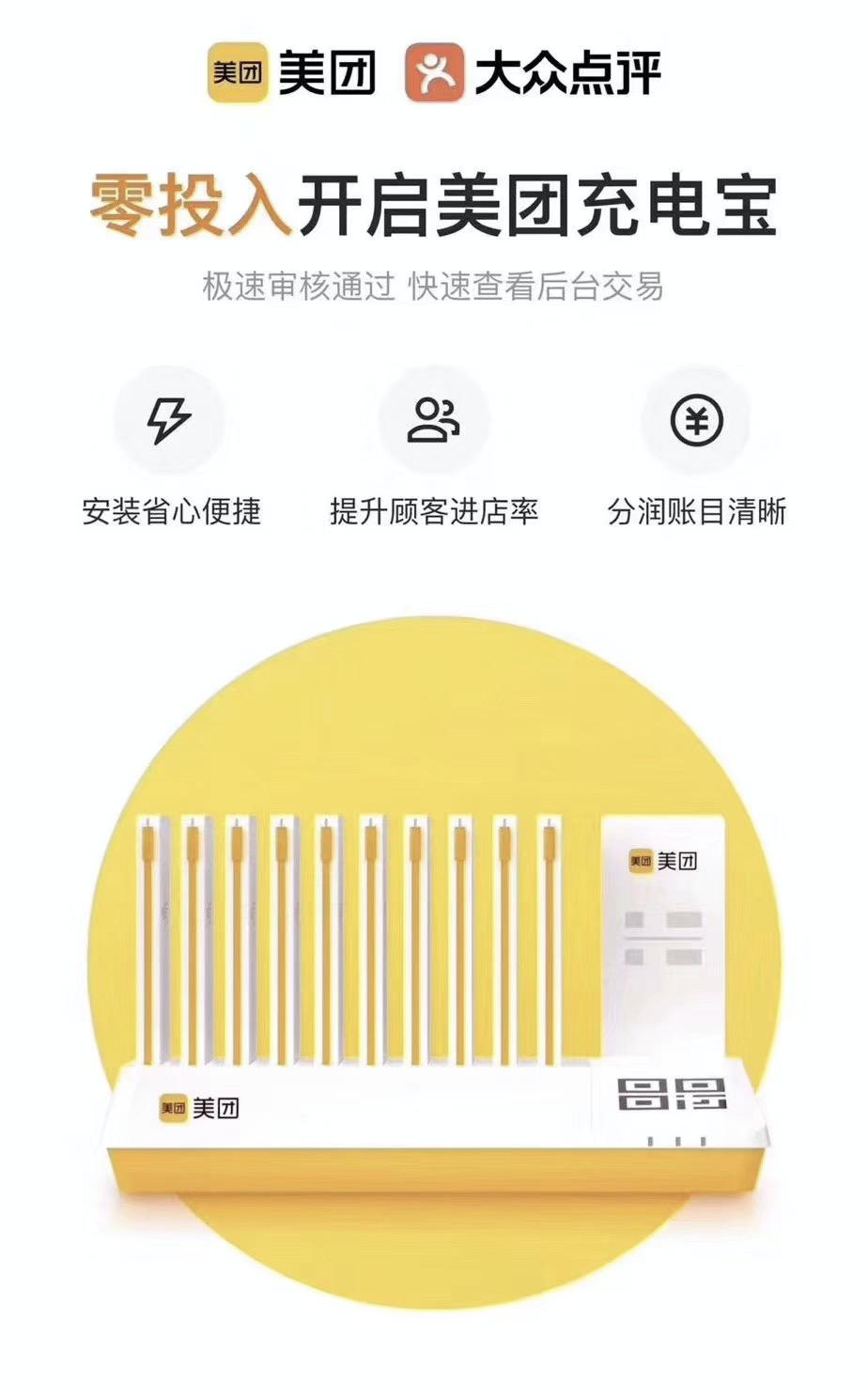 去年 6 月,美团官宣更新 logo 颜色,变身 " 美团黄 "。从共享单车、二维码支付牌到 pos 机等,都变为黄色。在官宣的概念图中,黄色美团共享充电宝也首次露面。行业内地推人士表示," 去年已经在深圳、重庆、上海地区部分商店,见到黄白相间的美团共享充电宝机器。"