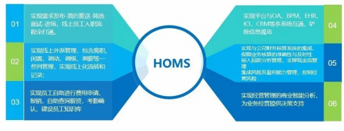 随着公司规模、业务范围日益扩大,仅靠人工录入数据支持已不能得到满足。2019年3月,为保证员工数据的完整性及准确性,规范业务开展、适应不断增长的业务规模,公司决定开发HOMS系统,以此支撑公司倍增5年的战略落地及推进IPO的顺利进行。