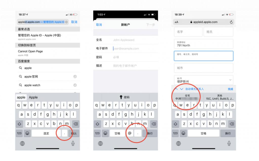 例如当系统检测到是网页输入框,键盘区的空格边上会加出来一个点按键,长按英文句号还可以快速输入 .com 等后缀;当检测到邮箱输入框,则会出现一个 @ 的按键;当检测到地址输入框,会在候选区推荐你在个人通讯录里保存的地址;在名字输入框,会推荐你的个人名字。