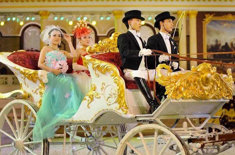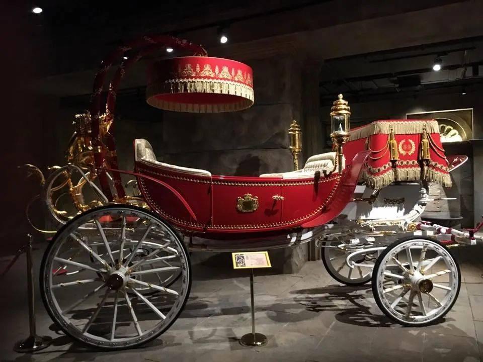 除了皇室贵族的出行工具,这里还收藏着一辆海澜集团老板周建平儿子结婚时的马车,不仅完全复制了 19 世纪欧洲王室的礼仪,而且还设计了代表两个家族的合体纹章,说是 " 欧洲骑士传统的江苏正统继承人 " 也不为过。