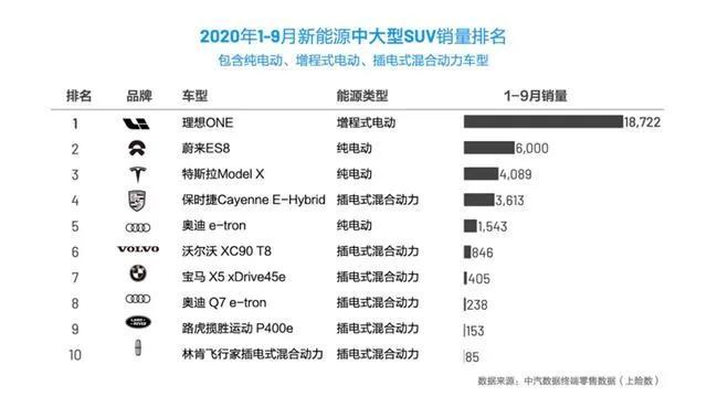 然而该销量排名或也能说明理想ONE目前存在的一些问题。榜单中排名2-10位的车型售价均在50万-180万之间,比如排在2-4位的蔚来ES8、特斯拉Model X和保时捷卡宴E-Hybrid,售价区间分别在46.8-62.4万、77.29-87.29万、88.8-179.8万。从这个角度来说,售价32.8万的理想ONE与其他车型的可比性并不强。