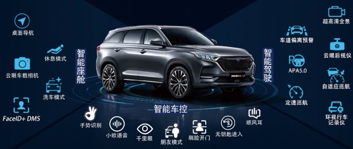 除外观和内饰外,2021款欧尚X7还在配置上下了大功夫,具备越级的产品力。新车全系标配了ABS+EBD等五项主动安全系统、高强钢环形车身、胎压监测以及PM0.1级高效复合滤芯,还搭载了APA 5.0一键全自动泊车系统和360°全景影像等九大同级独有功能配置。当然,这些配置在长安欧尚X7看来还不算狠,面对残酷的市场竞争,必须要有“杀手锏”。