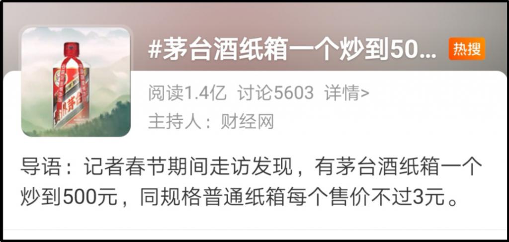 精彩的还在后边。这次跟着茅台一起涨价的,居然还有茅台酒的纸箱。现在一个茅台纸箱居然炒到 500 元???# 茅台酒纸箱一个炒到 500 元 #话题还冲上了热搜。