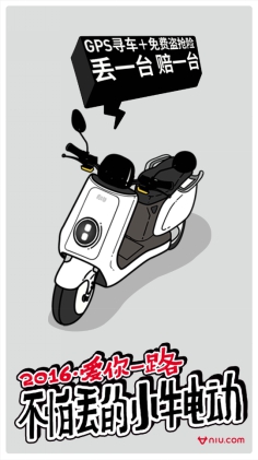 其一,抢的是世界互联网大会头条的热点,在云集了马云、马化腾、李彦宏等互联网老大的地方,眼球效应的效果比任何时候都要大得多,小牛电动车能用广告的形式露一脸,算是把天时地利人和的有利因素都用上了;其二,“不怕丢”是一个胆大直白的口号,而小牛电动车口出狂言的信心来自于“GPS+盗抢险”双重保障,前者是通过“小牛管家APP”能对车辆进行实时定位,后者则是在11月25日发布的“牛油保”保险(行业首例),其中包含了整车盗抢险——确实丢失50天后,赔付一辆新车。