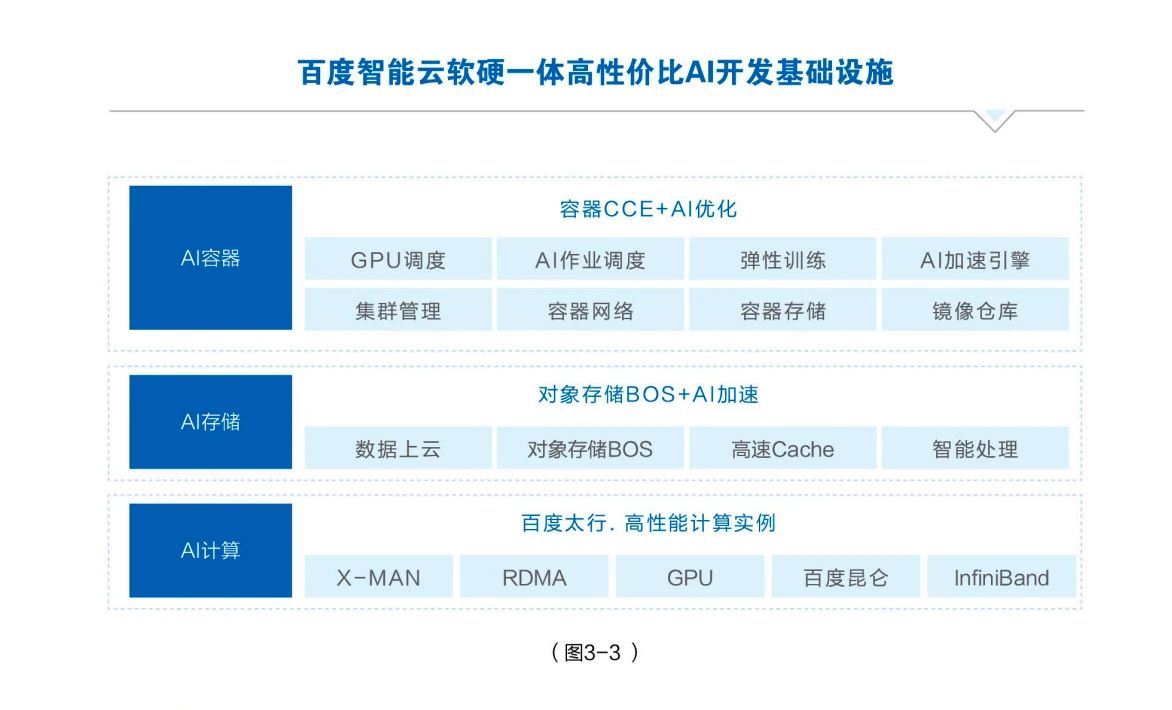 比如,百度智能云通过AI计算、存储、容器三层基础设施,软硬一体的AI开发架构下,AI与云不是简单的加法,而是底层上的融合,因此计算层的性能更高,数据处理速度更快,储存层数据处理更快,容器层的资源管理更为高效。