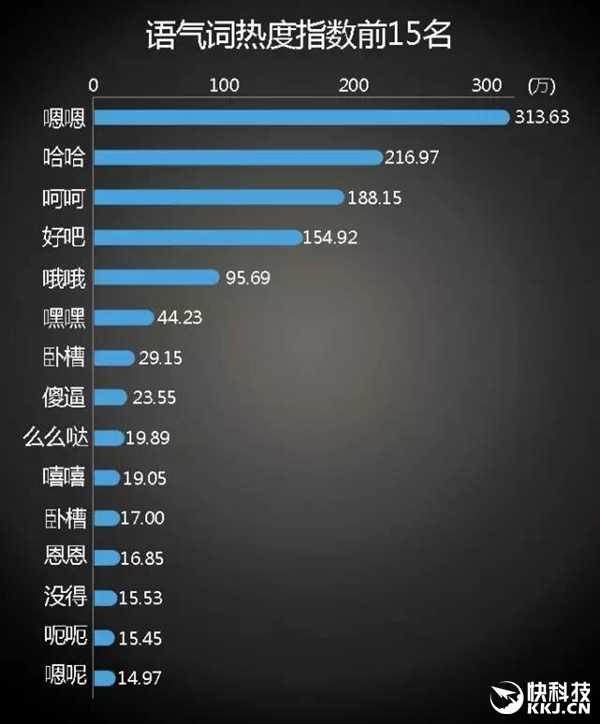 4-10名分别是:好吧、哦哦、嘿嘿、卧槽、傻逼、么么哒、嘻嘻。