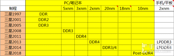 三星DDR和LPDDR里程碑节点