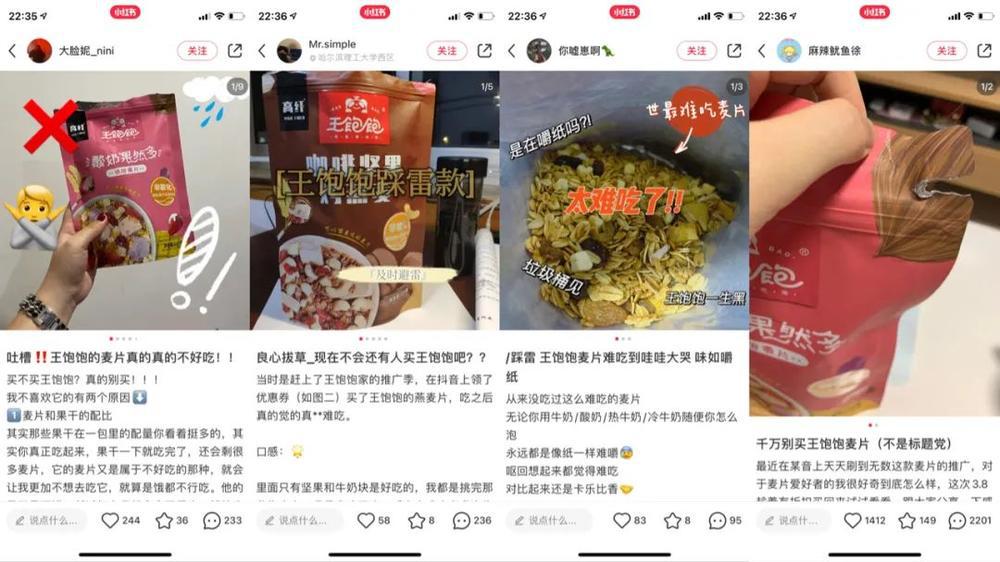但物极必反,现在的王饱饱被营销反噬,遭遇 KOL 集体给差评。