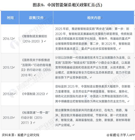 更多本行业研究分析详见前瞻产业研究院《智能制造行业市场前瞻与投资战略规划分析报告》,同时前瞻产业研究院还提供产业大数据、产业研究、政策研究、产业链咨询、产业图谱、产业规划、园区规划、产业招商引资、IPO 募投可研、IPO 业务与技术撰写、IPO 工作底稿咨询等解决方案。