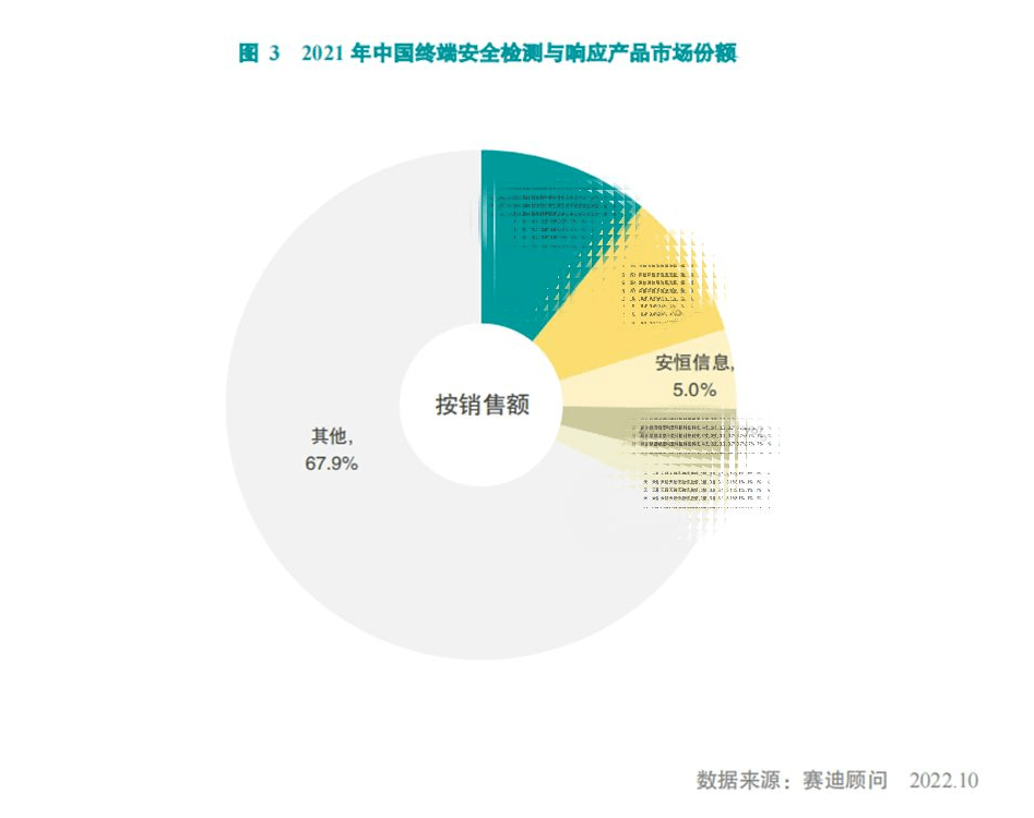 近日,国内权威咨询机构赛迪顾问发布了《中国终端安全检测与响应产品市场研究报告(2022)》。安恒信息明御终端安全及防病毒系统(以下简称“安恒EDR”)因占全国市场份额5%,排名第三。能够获得如此多客户的青睐,源于安恒EDR专注“内功”的修炼。