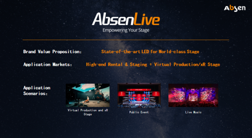 作为艾比森旗下品类品牌,AbsenLive致力于为高端租赁市场和虚拟制作以及xR舞台领域提供LED显示产品和服务,将虚拟与现实融为一体,为舞台创意无限赋能。在全球演出市场强劲复苏的趋势下,AbsenLive品牌旗下新品JP Pro系列、FL系列的发布,将为全球更多演出舞台增添更加绚丽的光彩。