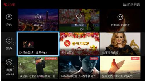 乐视超级电视始终坚持全面高配,每个新硬件发布代表了当前市场上的最顶级配置和最高性能的产品,能满足未来生命周期内的长期持续运营,满足用户体验的需求。分众运营使大屏生态营销更加精准化。例如超级电视的轮播频道、针对儿童、体育、影视、游戏用户的分众运营,基于用户兴趣的精准推荐,与超级手机等跨终端的多屏一致体验。以用户为核心的前瞻性使大屏生态营销创新不断。乐视独有的平台+内容+终端+应用模式,不是各个环节简单的堆砌,而是坚持生态化反,使营销在每个生态环节都能产生价值升华。