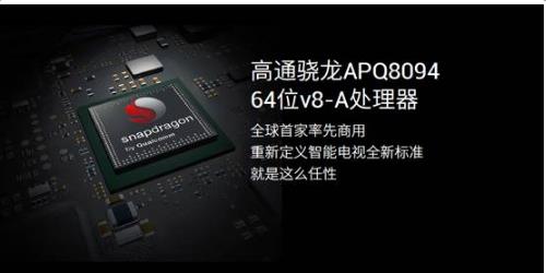 骁龙8094是高通骁龙810去基带版芯片,是全球首次将64位处理器高通骁龙810芯片商用到电视产品上,这款芯片采用四核Cortex-A57+四核Cortex-A53架构,以及Adreno430图形芯片。高通声称相比Adreno420来说其性能提升了30%,支持DX11.2、OpenGLES3.1、OpenCL1.2完整版,支持完整的H.265硬件解码,不但能输出4K信号到显示屏,还能同步输出4K到外接设备,性能极为强大,几乎所有规格都是最高标准。