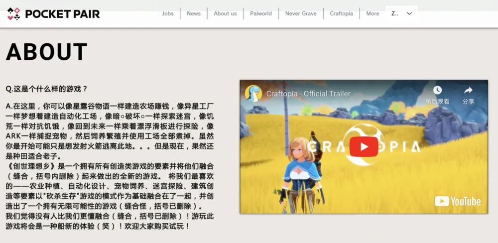 在此之前,Pocketpair还发售过《超载地牢》《创世理想乡》两款游戏,走得都是类似的路子。其中,《创世理想乡》“缝合”了《塞尔达传说:荒野之息》《怪物猎人》《异星工厂》等多款游戏,在Steam的销量达到50万份。当时,市场对此也有一些争论,Pocketpair对此也不讳言。