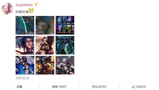 去年1月,Angelababy与若风、微笑等人在斗鱼直播间,直播英雄联盟五人黑局,引来240万观众在线直播观战,场面十分壮观。不少人在微博上晒出女神Angelababy在某游戏平台上与LOL大神若风和微笑开五人黑局的截图,并艾特Angelababy,大呼女神带我一起“开撸”。更有网友截出baby游戏记录,发现baby不止不是“天坑”,反而是一个游戏狂魔。