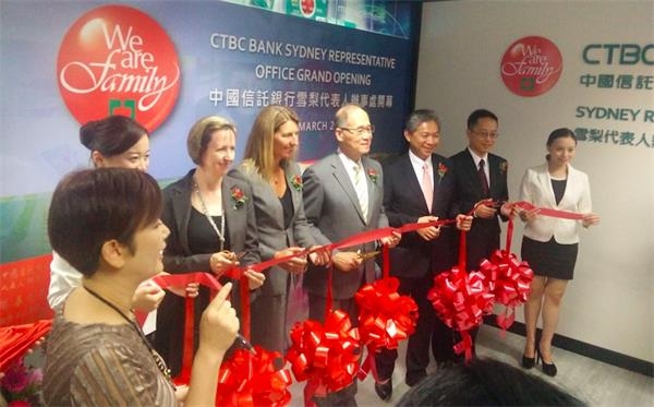 ACB News 《澳华财经在线》报道,3月21日,CTBC中国信托商业银行悉尼代表人办事处举行开幕仪式。CTBC中国信托商业银行资深副总经理、策略长施景富在开幕仪式上致辞并剪彩。施景富称,台湾与澳大利亚的经济贸易往来日益密切,台湾中国信托银行看到了许多在澳投资经营的台商、移民、游客等存在巨大的金融需求,希望将来可为其提供全面的金融服务。