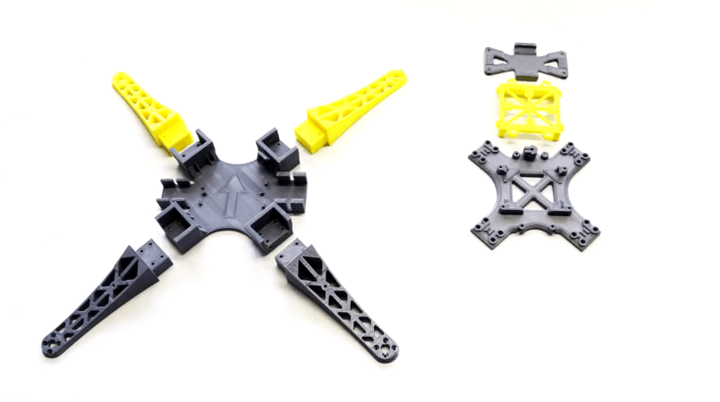 如果你的无人机底盘毁坏或你只想更新无人机设计,只要你有一个3D打印机,下载一个文件,再自行打印即可。