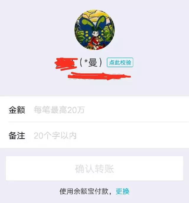 这时候,千万不要急着转账,而是点击用户名后面的——点此校验,会让你补全对方姓名进行验证——