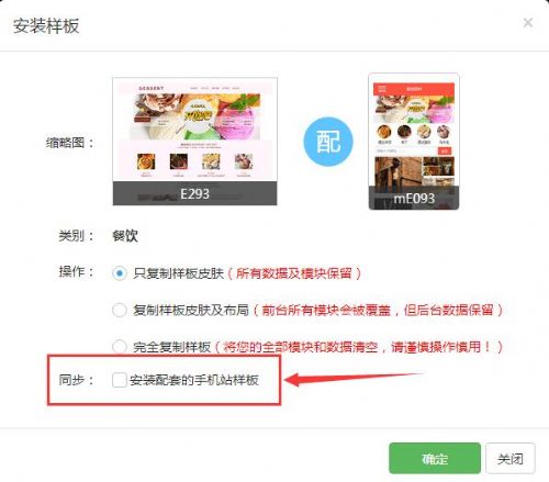 第三、安装样板的时候,选择“同步安装配套的手机站样板”,即实现电脑站、手机站同步。