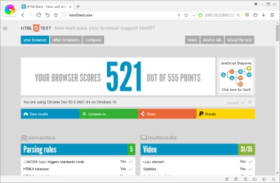 360极速浏览器8.7版本HTML5测试得分
