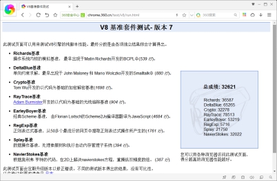 360极速浏览器8.7版本V8 JS测试得分