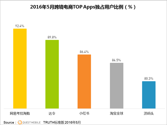 四、跨境电商主流APP独占用户比例