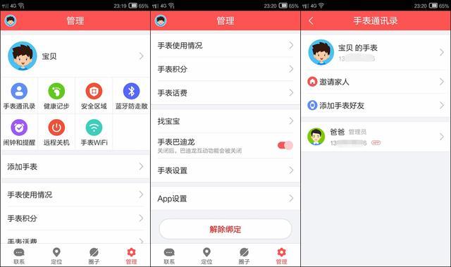 360儿童卫士APP也具备了社交功能,在圈子界面下,提供了一些和儿童教育、健康成长有关的信息,还可以关注一些达人账号、参与活动,这里我就不累述了,重点来看看360儿童卫士APP的管理界面。在该界面里,家长可以对手表的通讯录进行设置,查看孩子每天的步数,查看孩子是否处于安全区域,还可以打开蓝牙防走散功能,设置手表的闹钟和提醒,进行远程关闭手表和手表wifi的连接操作。需要注意的是,当sim卡从手表的卡槽里取出之后,手表wifi就无法同步完成。